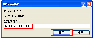 3、接着我们将第二个键值还原掉,将其还原到:%ALLUSERSPROFILE%;如下图所示: