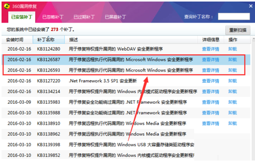 3、找到我们需要的KB3126587、KB3126593 这两个补丁,这里我们找到KB312开头的,然后下拉就可以看到了,然后我们分辨把这2个补丁给卸载了。接下来再卸载另外一个补丁;另外一个补丁在上面2个补丁的下面,也就是KB2140410,这个补丁应当是后面才出来的,所以我们以前只卸载前面2个就可以了,但是现在需要卸载的就多家一个KB2140410补丁了;