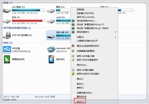 1、插上问题U盘,在电脑桌面双击“盘算机”,有的是“我的电脑”,进入盘算机磁盘主界面;找到自己的问题u盘,右键点击这个u盘,弹出快捷选项,点击“属性”。