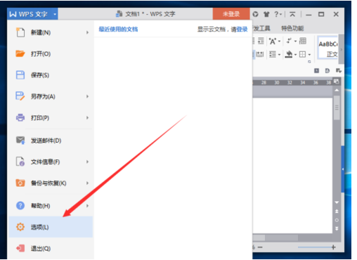 2、打开WPS文字选项对话框中,点击“选项”命令选项。如图所示;