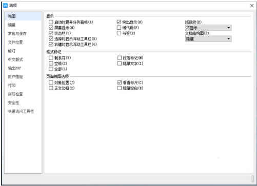 3、点击“选项”命令选项后,打开WPS选项对话窗口。如图所示;