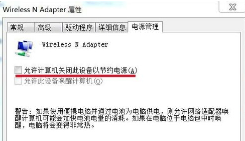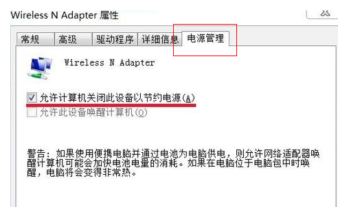 6、在弹出的“{Wireless N Adapter属性”窗口,单击“电源管理”。