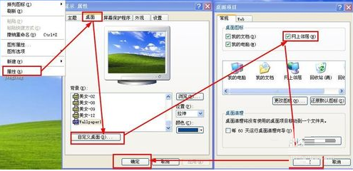 2、在弹出桌面属性窗口中点击“桌面”,选择“自定义桌面”,