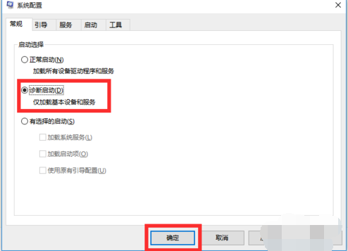 2、在“系统设置”界面中,切换到“惯例”选项卡,勾选“诊断启动”项,点击“断定”按钮,重启一下盘算机。