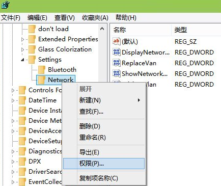 3、然后将Network的所有者修正为为everyone 或登录帐户 不改的话会没有权限修正。在右侧双击"ReplaceVan",将值改为2 断定即可;