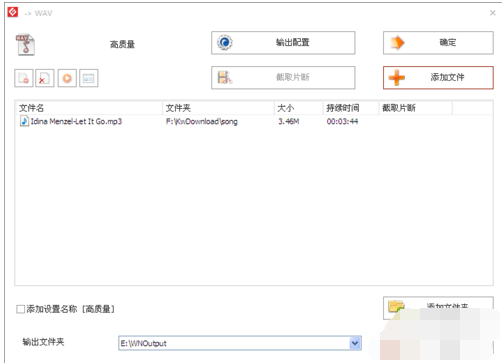 4、选择【添加文件】添加要转换的源文件,添加完成后即可在对话框中显示。同时也可以在此对话框中设置输出的地位和要转换的部分等。