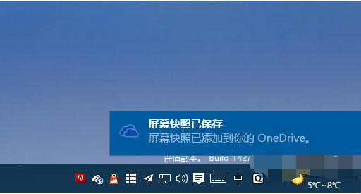 2、当你点击“保存到OneDrive”按钮后,每次当你按下PrtScn按键时OneDrive都会主动将你捕获到的截屏保存到OneDrive\图片\屏幕截图中,并涌现下图所示的提示: