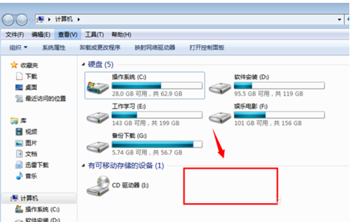 6、再次打开“我的电脑”盘算机里面就看不到DVD去掉程序设备了。