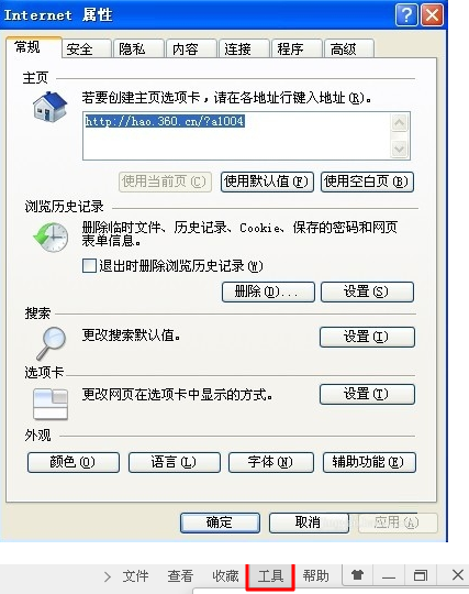 1、打开浏览器,然后选择右上角的“工具”,在下拉菜单之中点击“Internet选项”,如图所示: