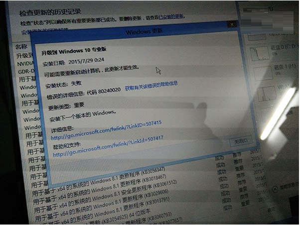 2、80248007,更新安装毛病。同样无法完成Win10升级