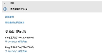 以上就是Win10系统查看更新历史记载中Bing工具栏7.0(KB2626806)重复更新的处理方法,要是用户也遇到同样的问题话,不妨参考本文方法来处理。