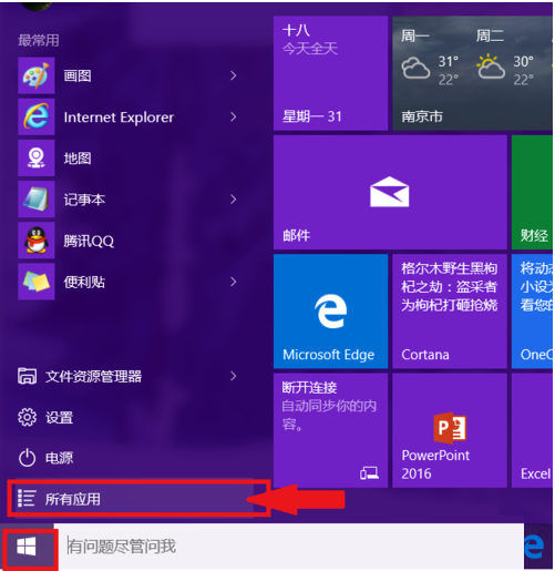1、首先要解决的是找到方便贴软件:点击windows徽标键→点击【所有利用】