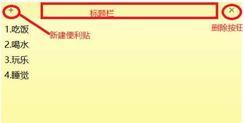 3、如图,点击左上方的【+】可以新建方便贴,右上方的【X】为删除方便贴。在标题栏地位拖动方便贴到合适的地位