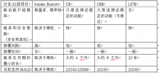 Windows as a Service(Windows即服务),针对不同的用户供给不同的服务,我们将以上四种服务方法比较如下: