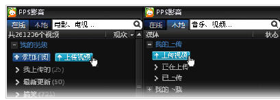 3、填好内容后,点击上传按钮。本地“正在上传”列表下就会生成上传新任务。上传完成后,在“已上传”列表双击即可在PPS影音中播放。