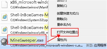 2、打开文件夹之后再”MineSweeper.exe“文件上单击右键,选择”发送到“—”桌面快捷方法“即可;