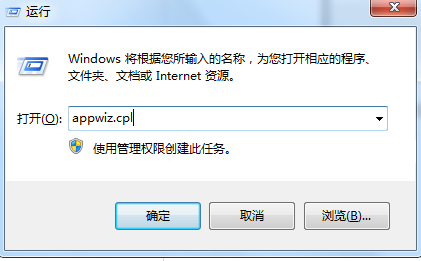 1、按下”Win+R“组合键在框中输入”appwiz.cpl“按下回车键打开”程序和功效“;
