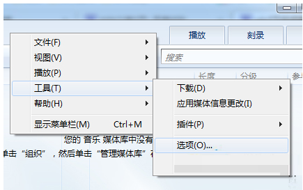 2、在打开的播放器菜单栏的空白地位处右键单击一下,在右键菜单中,选择工具,再点击“选项”。