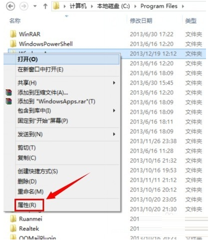 1、需要把该文件夹的所有权赋予管理员账号上才可以打得开的。在该文件夹上点击鼠标右键。选择【属性】