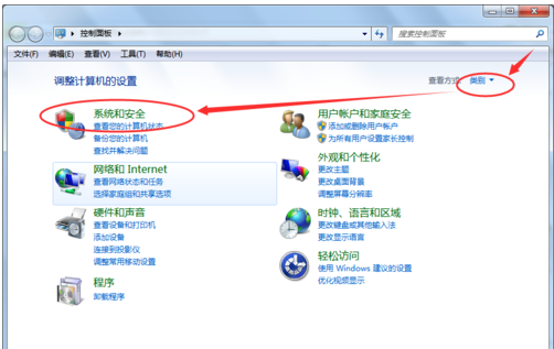 1、开端——把持面板。查看方法:类别,点击打开系统和安全。