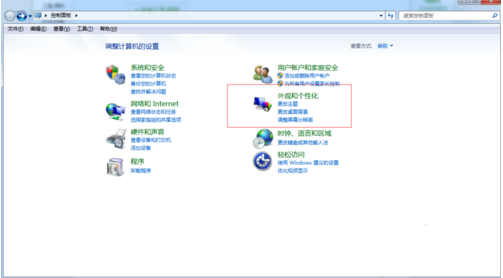 2、进入把持面板主界面后找到下方列表中的外观和个性化选项打开。