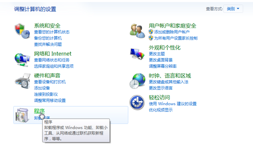 1、点击开端菜单,打开把持面板;选择“程序”。