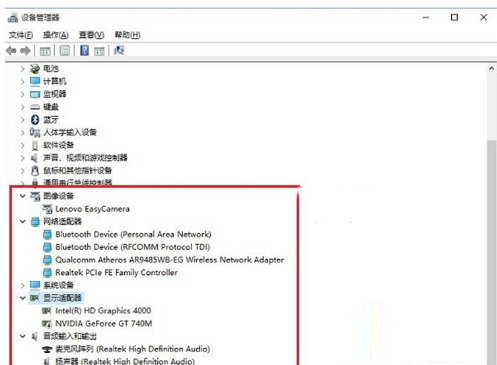 3、打开设备管理器后,就可以看到所有的设备了,重要注意看下,这里有没有硬件上面有感叹号的,还有未知设备,如果有带黄色感叹号的,则阐明该硬件驱动不正常。在这里重要展开看看:图像设备(摄像头)、网络适配器(网卡)、显示适配器(显卡)、音频输入和输出(声卡)等硬件驱动是否正常,如图所示,没有感叹号,则阐明驱动是没有问题的。