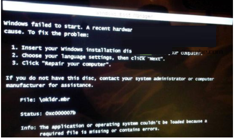 最近,有些用户在重装Win7系统的过程中遇到“黑屏oxc000007b”问题(具体故障如下图所示),这是怎么回事呢?遇到这问题又该怎么办?针对这问题,现在,小编就来和大家介绍一下涌现此问题的原因及处理方法。