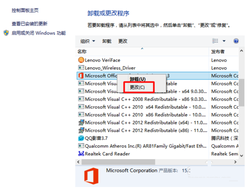 3、我们找到我们的“micosoft office professional plus 2013”;右击选择“更改”