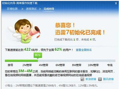 1、打开迅雷主程序,点击“小工具”按钮,从中选择“初始化向导”项;