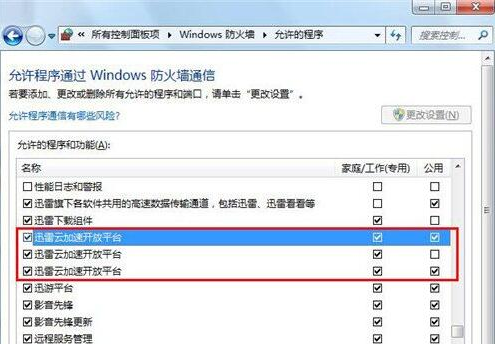 3、确保“迅雷云加速平台”可以正常通过Windows防火墙;