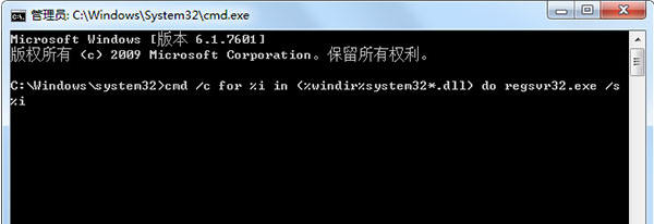 2、复制以下信息:cmd /c for %i in (%windir%system32*.dll) do regsvr32.exe /s %i;