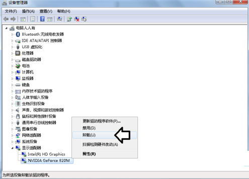 2、找到显示适配器→右键点击显卡设备(通常是独显)→卸载;