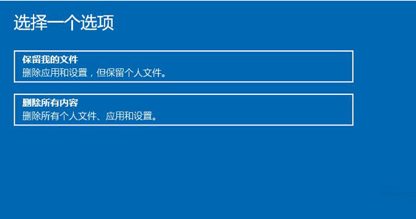 4、接下来会涌现两个选项“保存文件”和“删除所有内容”(如果是预装的电脑还会有第三个选项“还原出厂设置”可以赞助你恢复到出厂时的系统);