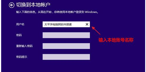 5、输入要切换到的本地账户名称,有密码的需要填写密码,无密码可以疏忽密码,点击“下一步”;