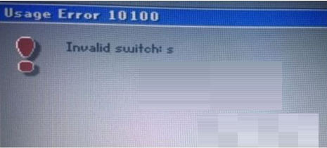 最近,有用户安装Ghost Win7系统时弹出Usage Error 10100提示框,提示“invalid switch”,导致安装失败,具体故障参见下图。Ghost Win7安装步骤简略、方便、快速,深得用户的青睐。那么,遇到这问题该怎么来处理呢?一起来看下文具体介绍吧。