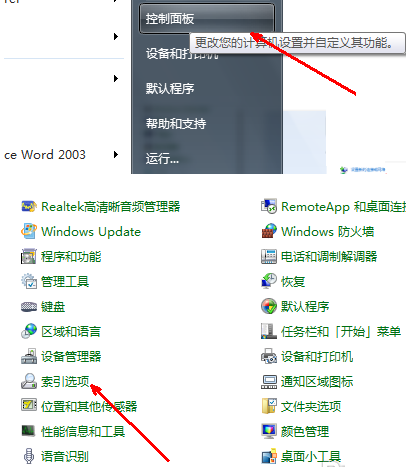 1、首先在开端菜单中打开把持面板,在把持面板中打开索引选项,如图所示。如果在把持面板中没有创造索引选项这个选项,就点击把持面板右上角的类别,然后选择小图标。