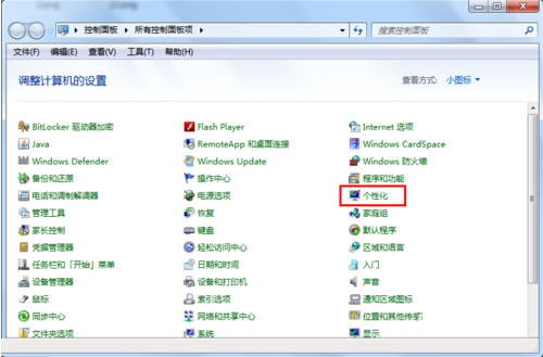 2、在打开的“把持面板”程序中选择并打开“个性化”工具