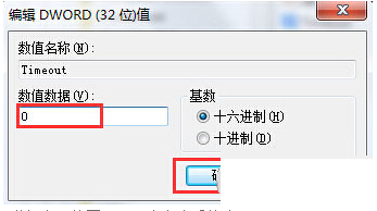 3、双击打开Timeout,在弹出的窗口中将默认值“7”修正为“0”。