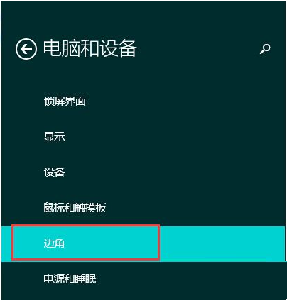3、在“电脑和设备中”点击下方的“边角”选项;