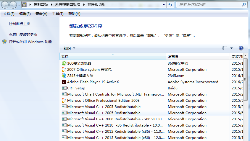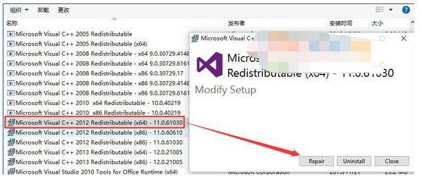 2、找到 Microsoft Visual C++ 2012 Redistributable (x64) - 11.0.61030 ;