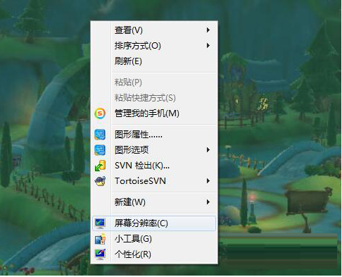 1、在桌面空白处右键打开Win7“屏幕分辨率”。
