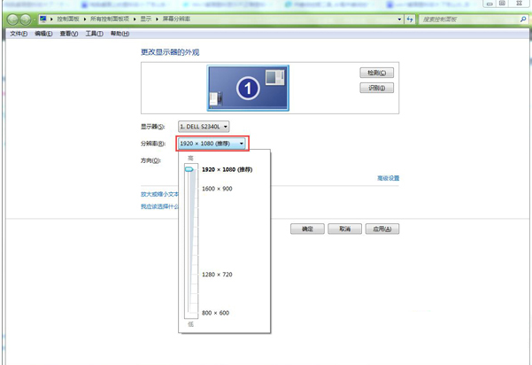 3、把Win7的屏幕分辨率调到最高,分辨率越高图形显示越细腻,而且图标也会变得越小。