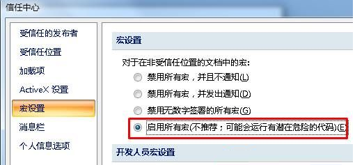 2、在宏设置中选择“启用所有宏”点击利用并断定即可