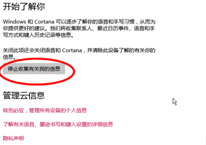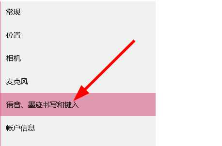 3、隐私菜单中选择“语音,墨迹书写和键入”