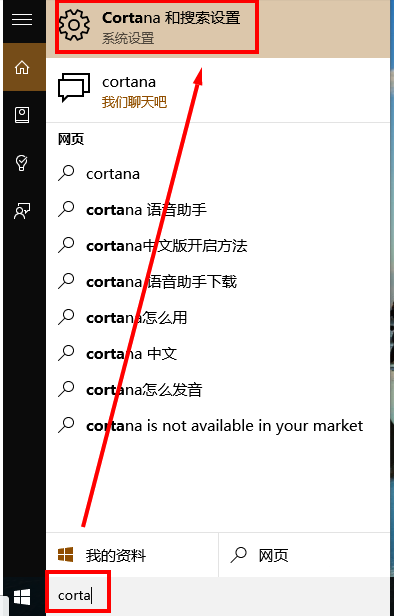 1、想要通过语音直接唤醒Cortana,需要在Cortana设置里面进行开启。首先在Cortana的搜索框中键入“Corta..”,然后点击 “Cortana和搜索设置”;