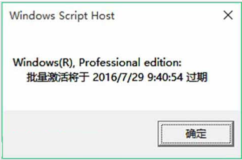 2、输入完命令后,点击底部的 断定 就可以看到Win10批量激活将于xxx日期过期提示了,如下图所示: