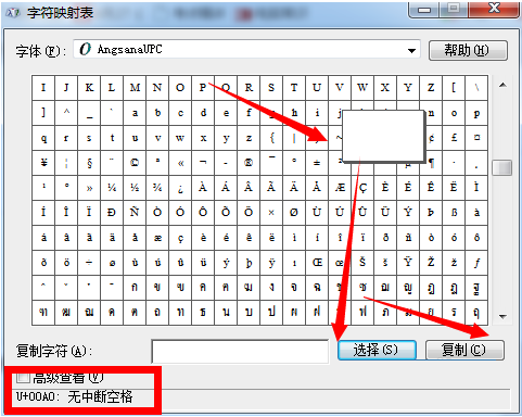 3、我们点击空白格,下面涌现空格注释:“无中断空格”,然后我们点击“选择” ---“复制”