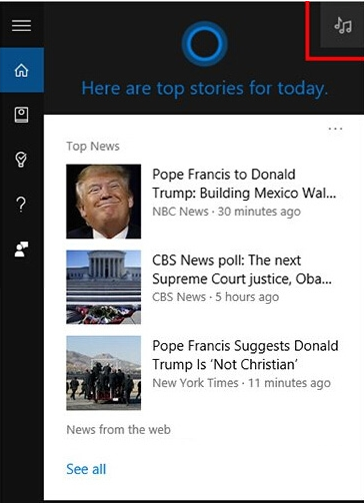 1、Cortana中搜索歌曲更方便:微软已经在Cortana中参加激活音乐搜索按钮,就在Cortana界面的右上角。用户点击音乐按钮后可以让Cortana进入凝听状态,搜索正在播放的歌曲。