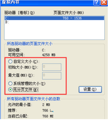 1、首先虚拟内存“无分页文件”就表现关闭虚拟内存,在你物理内存够大的时候还有你应用的软件不需要虚拟内存的时候那么就可以选择对XP系统每个磁盘都设置“无分页文件”彻底关闭虚拟内存;